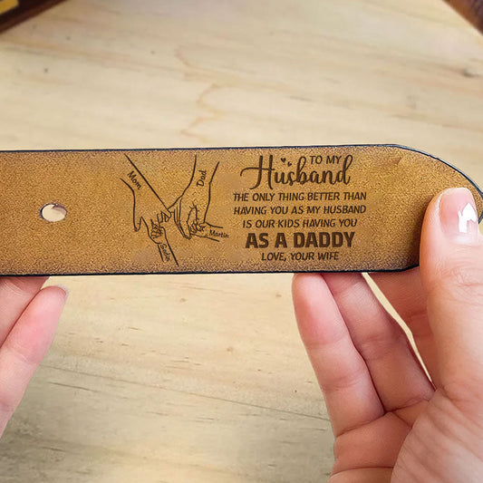 Having You As A Dad Version 2 - Personalized Engraved Leather Belt